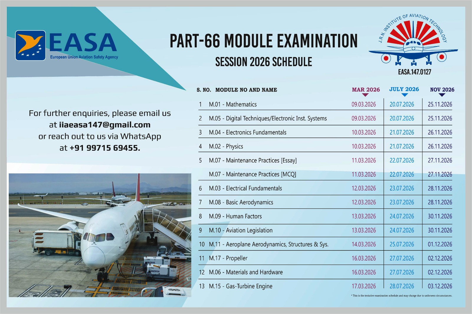 For the EASA Part 66 Module Exam queries related to exam at Delhi enquiry, mail to us at iiaeasa147@gmail.com or WhatsApp: +91-9971569455